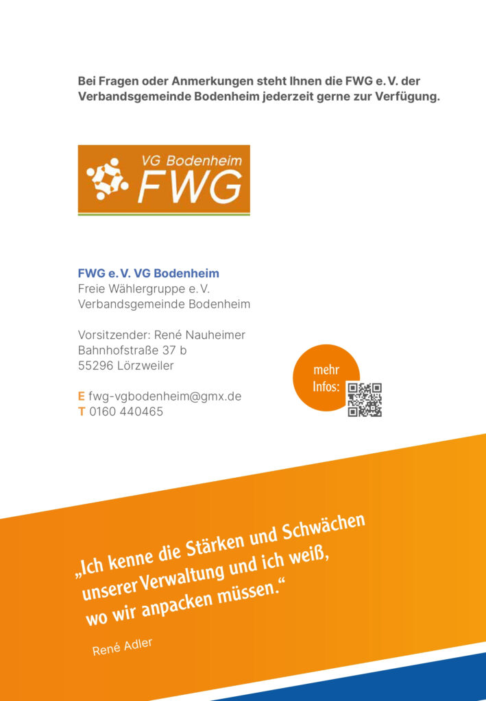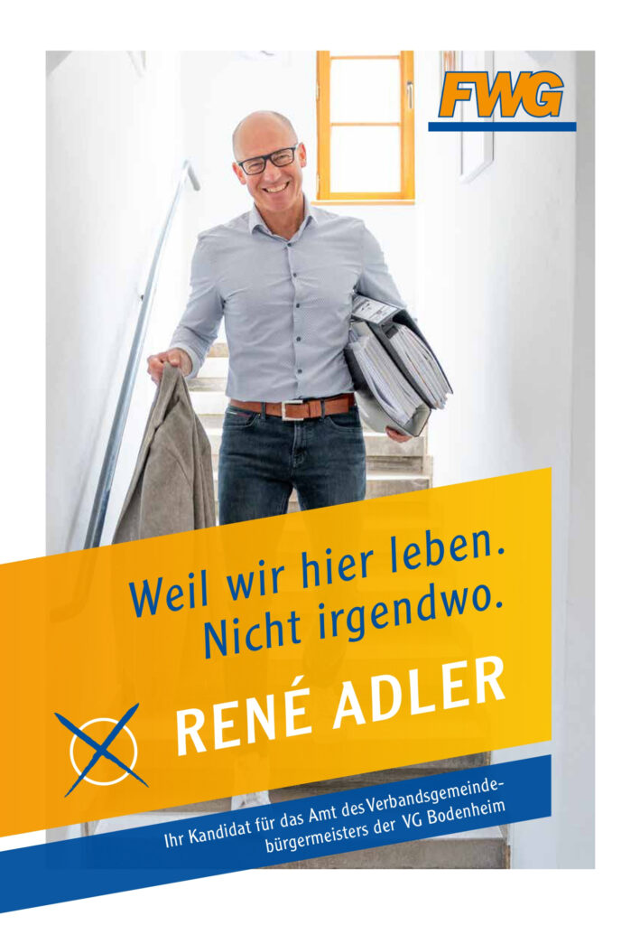 Die FWG der Verbandsgemeinde Bodenheim nominiert René Adler als Bürgermeisterkandidaten – ein Macher mit Weitblick und Bodenhaftung.