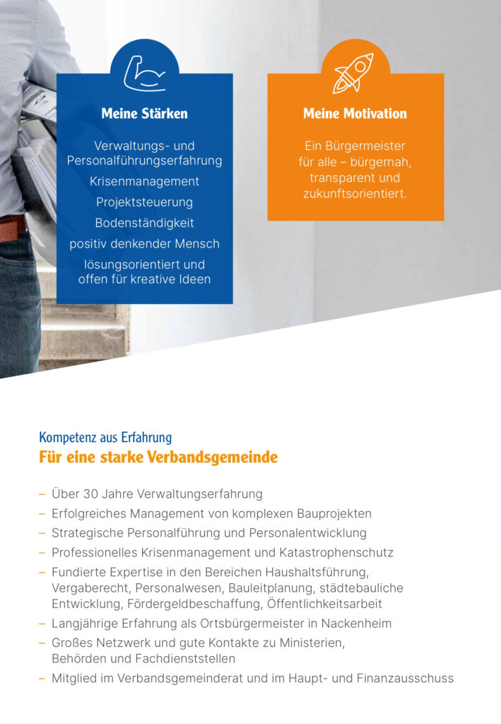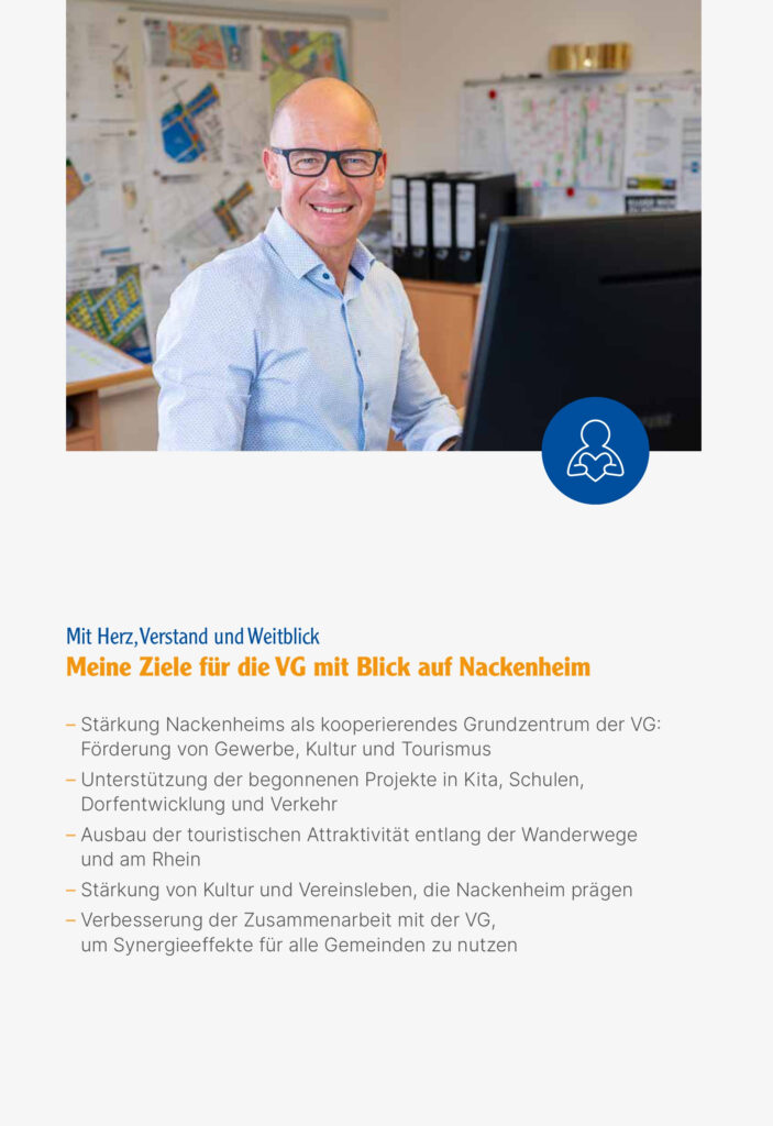 Gemeinsam mit dem Team im Rathaus und den Gremien, haben wir viele positive Veränderungen für unseren schönen Heimatort bewirkt. Für die kommenden Jahre haben wir viele ehrgeizige Pläne, um die positive Dynamik der letzten Jahre fortzusetzen. Ich werde mich weiterhin mit voller Kraft und viel Herzblut für Nackenheim einsetzen.